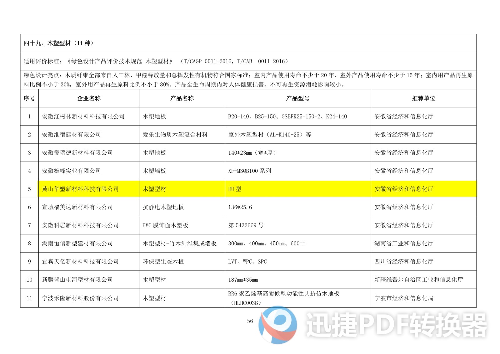 第五批綠色產(chǎn)品名單公布,華塑EU型木塑型材上榜。